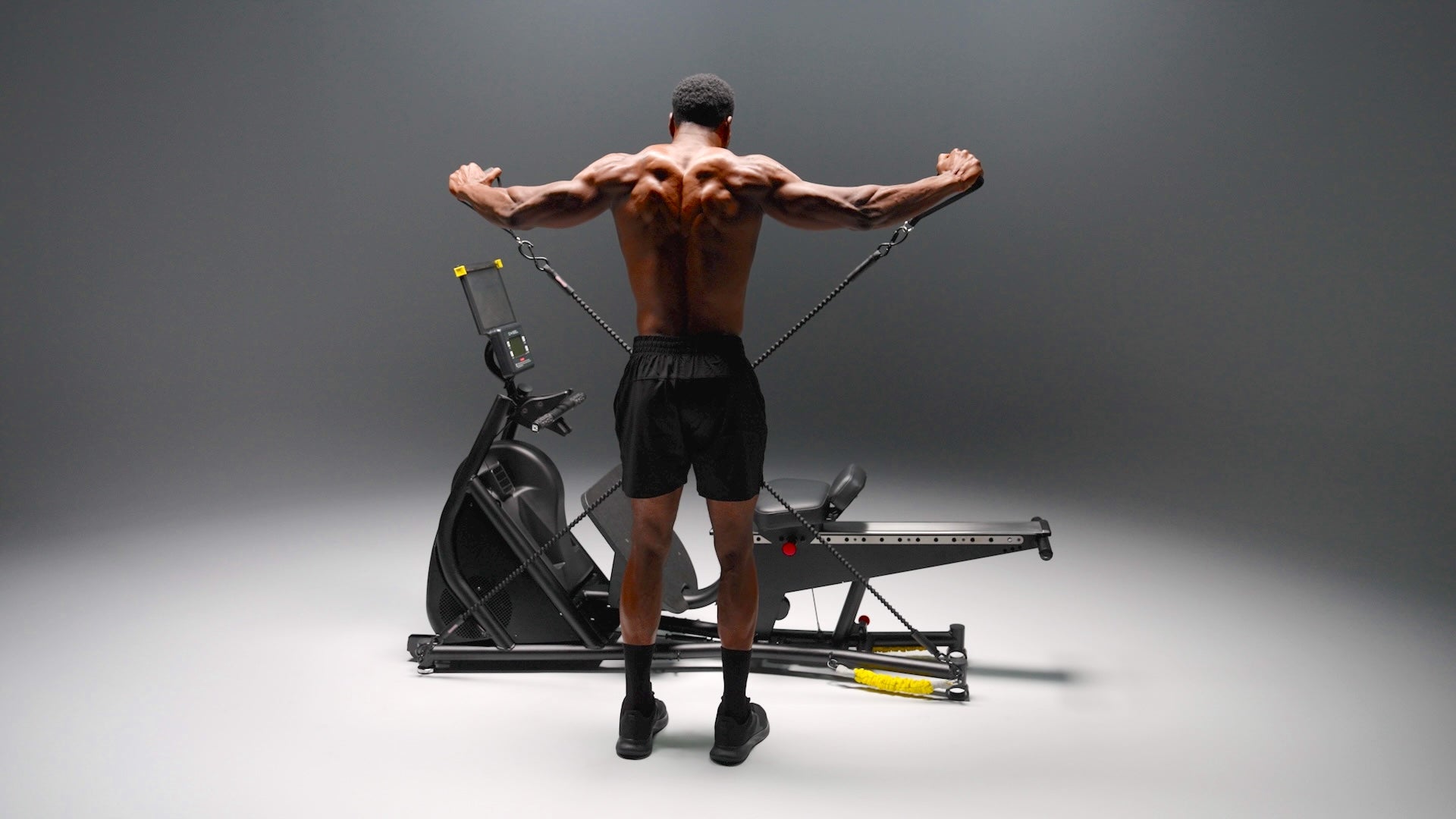 Patented, New Rowing Motion technology that combines strength and cardio into a single motion with no back stress, no need for foot straps and the option to work all muscle groups individually.